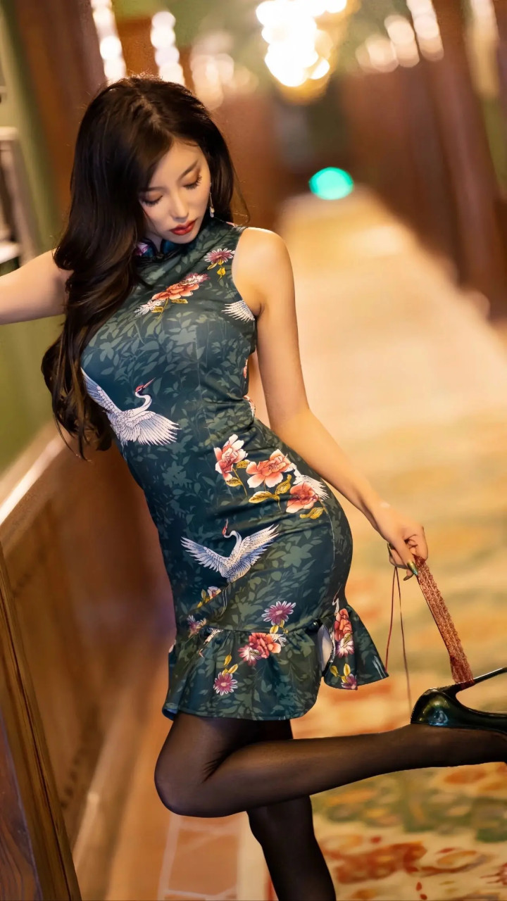 kpl外围投注 杨晨晨|蓝底花鸟图案短款旗袍,立场灵动,维抓韵味~