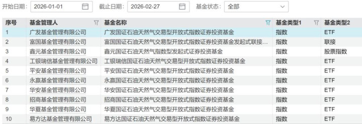 据统计,刻下有多达10只油气主题基金正在聚合陈说,富国、广发、吉良善永赢等多家公募机构均参与其中,家具类型涵盖ETF及勾通基金,且追踪地点清一色采选了国证油气指数。
