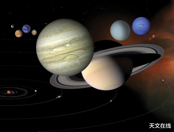 一幅太阳系的插图,为了能更详备地展示所有这个词天体,图中各行星之间的距离比实质近得多。好意思国国度航空航天局喷气激动推行室加州理工学院