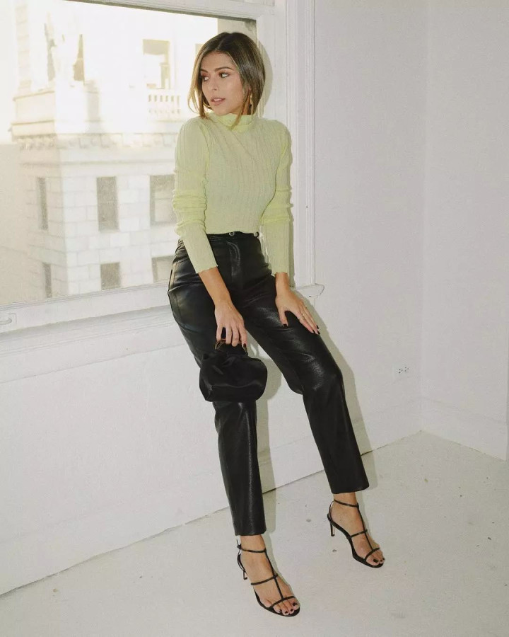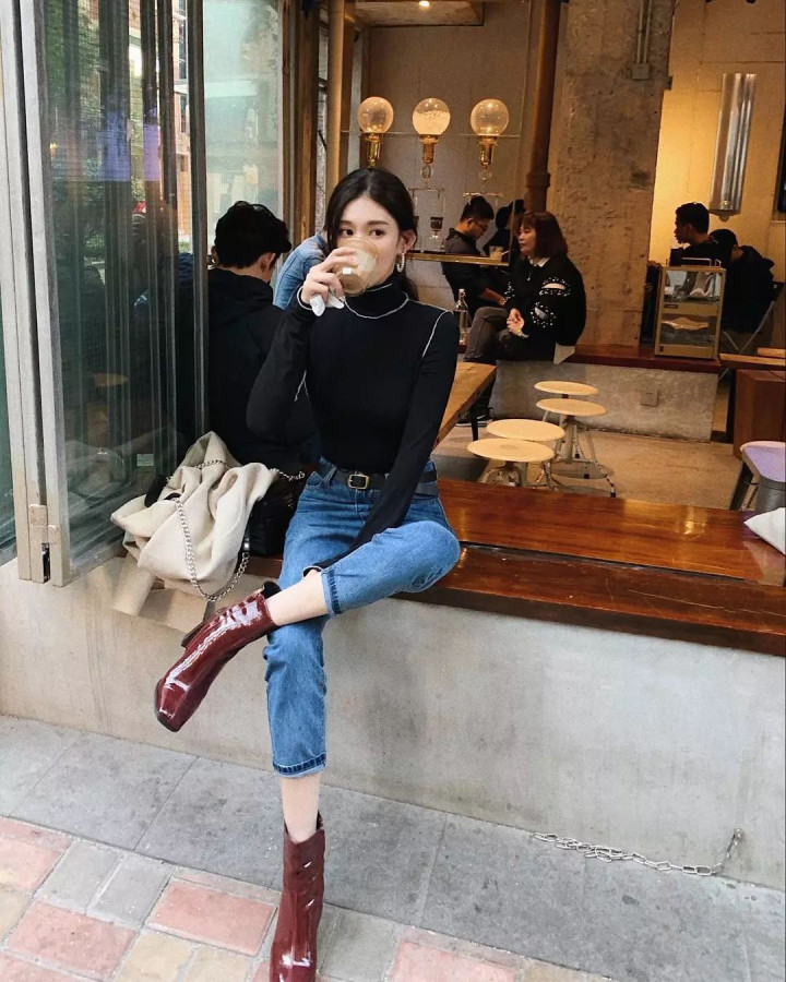 最妙的,是皮质烟管裤,玄色,窄身,踩进靴子里那一刻,总共东谈主齐敏感了。