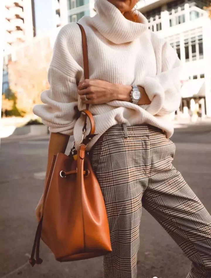 搭配一件浅咖色的高领毛衣,就好像咖啡杯里化了一角的奶油,十分缓和且不叫东谈主嗅觉腻烦。