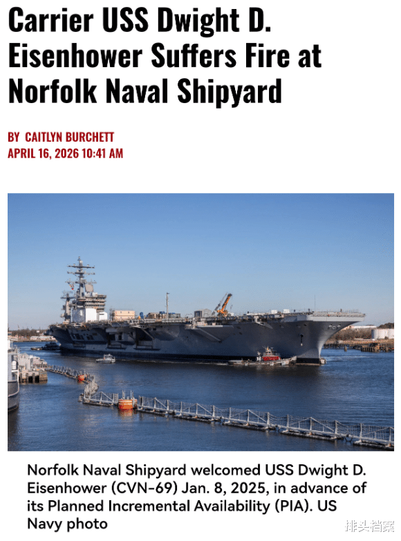 臆想许多东说念主齐还谨记很廓清,发生于好意思国舟师最新式航空母舰“福特”号上的那起连结放置超30小时,导致至少2名舰员被烧伤和数十东说念主出现呼吸说念损害,以及形成超600张舰内居住舱床铺损毁的大火,于今尚未透顶查明起火原因。而就在“福特”号火灾后短短一个多月的现时,又有1艘好意思军航母“烧得红红火火迷蒙眬糊”了。这次的“主角”是好意思国舟师现役“第二老”的“尼米兹”级核能源航母“艾森豪威尔”号……