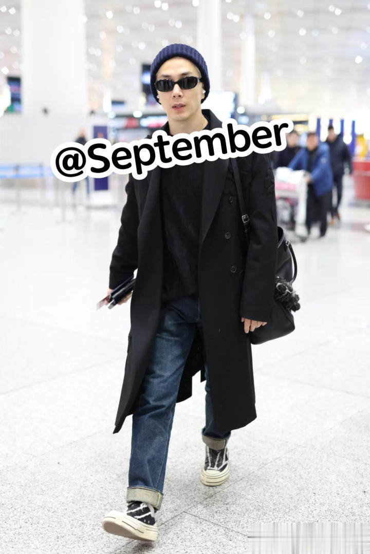 更绝的是他的搭配,头上戴了一顶黑色针织线帽,头发还染成了白色,帽子一压,远远瞅着竟有几分 “光头” 既视感。