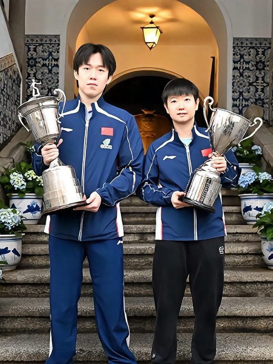 昨天比赛和授奖典礼完结后,王楚钦和孙颖莎又去拍摄了冠军城市宣传照。