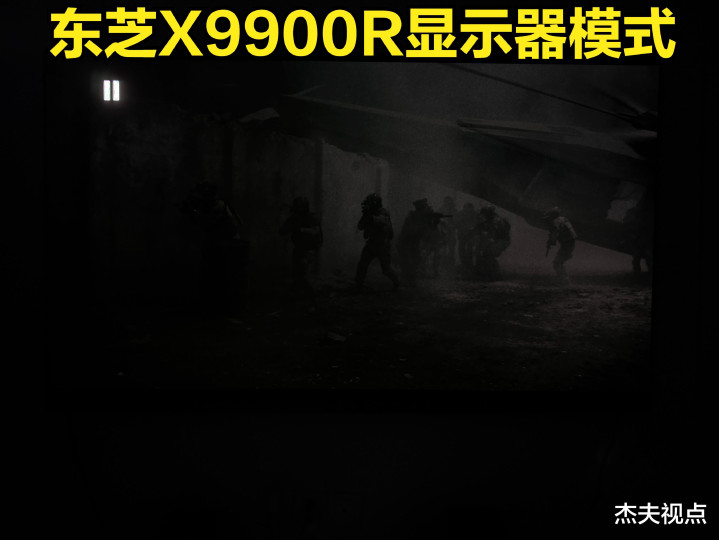 此次咱们用了东芝旗舰OLED电视X9900R来进行对比,视频换成了《猎杀本拉登》这个HDR蓝光原盘视频。这个视频局部暗场画面,亮度之低堪比《权游》,源画面亦然黑得一塌模糊,如果用Mini LED电视例必要全屏提亮,那么用莫得什么峰值亮度选项的OLED电视呢?