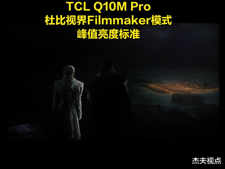 是的,很昭着跟着峰值亮度选项的转变,Q10M Pro在发达这一画面时全屏的亮度也随之转变,其中即使是将峰值亮度选项关闭了,但依然要比原始画面亮度更高。实践上《权益的游戏》蓝光圆盘自己亮度就偏低,即使将Q10M Pro的峰值亮度选项关闭,但依然远远够不上电视的峰值亮度。由此也可见,所谓的峰值亮度转变,并不局限于最高亮度,而是实践画面的全屏亮度有比例的普及,这天然也包括了最低亮度。