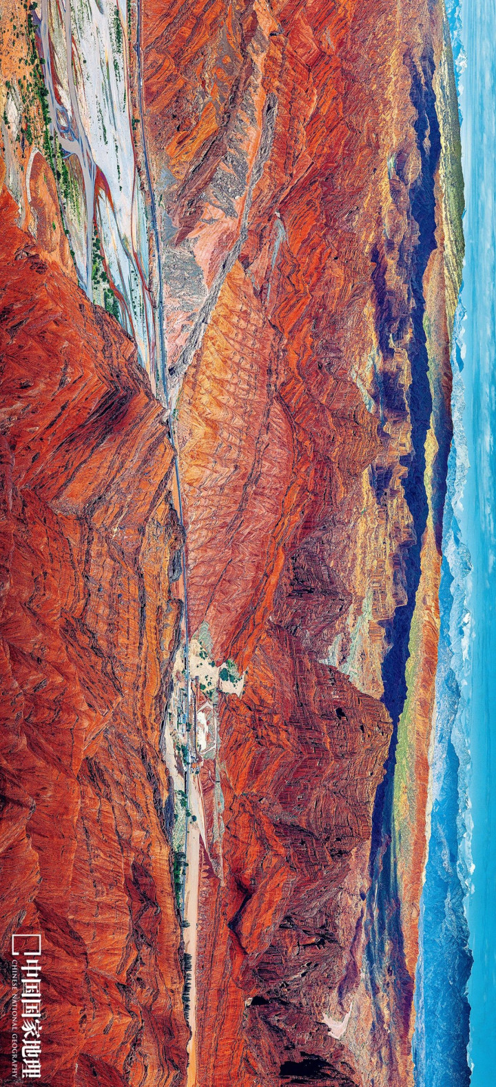 库车大峡谷展现的是另一种好意思学极致。天山南麓前山带的红色砂岩被水流生生切开,酿成颜色浓烈如火焰般的峡谷奇不雅。