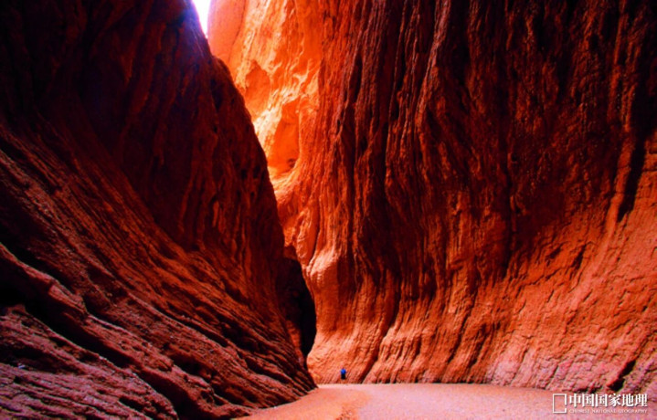 这条峡谷不仅是天山屡次隆升与夷平历史的见证,更是干旱地区暴雨巨流侵蚀地貌的典型代表。两侧的红色石壁高耸陡峻,峡谷曲径通幽,东谈主在其中,顿感自身的微弱。