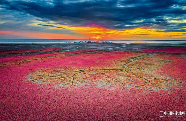 每年8到10月,碱蓬的神气由翠绿振荡为鲜红欲滴,缓缓陆续地滋长在沿路,仿佛在地面上盖了一张高大的红地毯,又如同天上的红霞坠入了大海,组成了一幅壮丽的滨海画卷。